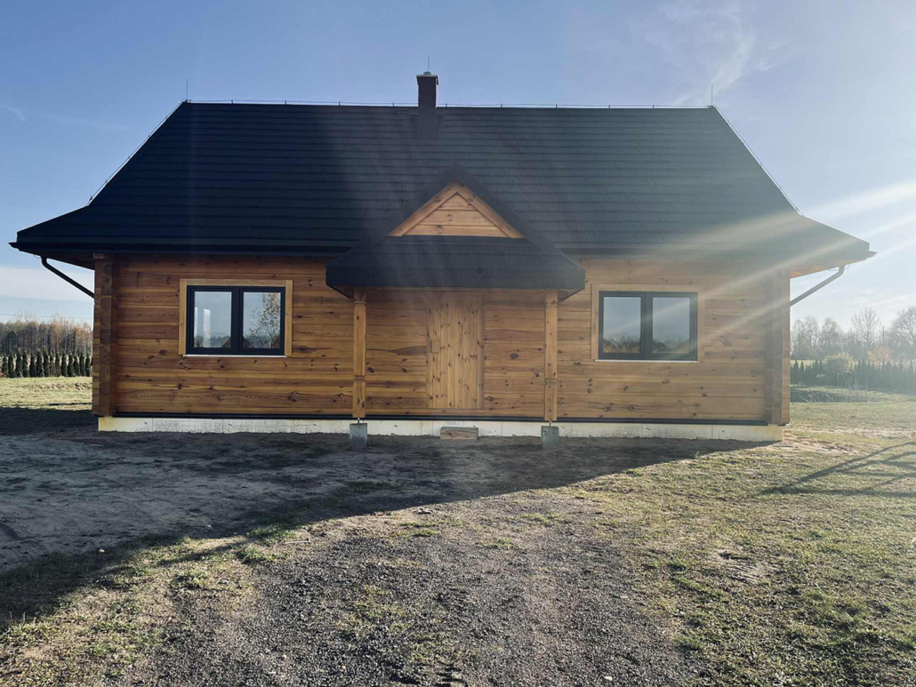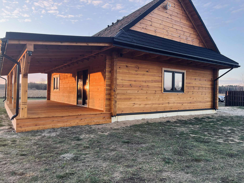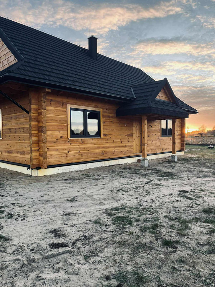 Po raz kolejny w Białymstoku Sielanka realizowała dom według indywidualnego projektu. Bale sosnowe, zabezpieczone preparatem Remmers, poszycie dachowe – Novatik.